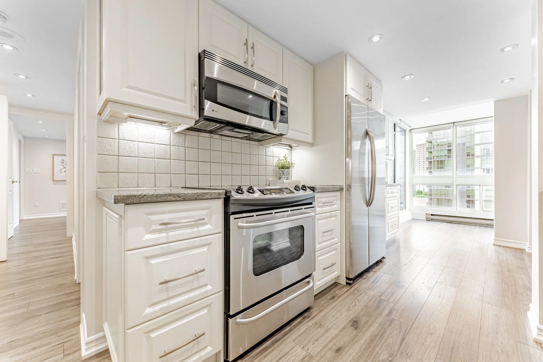 Discover refined living in 'The Pavilion,' an esteemed residence nestled just east of Yonge and Sheppard. This exquisitely updated 2+1 bedroom suite offers a thoughtfully designed floor plan with 1370 sq ft of interior space that maximizes both style and functionality. Take in the coveted South west panoramic views from the large windows surrounding this corner unit, plus enjoy one of the larger covered balconies overlooking the trees. The kitchen has lots of counter space and storage creating an ideal environment for culinary exploration and sophisticated entertaining.